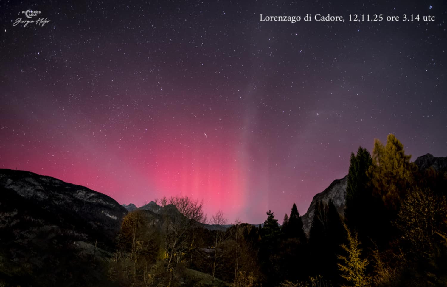 Nella notte tra l’11 e il 12 novembre, il cielo ha regalato un altro spettacolo straordinario: aurore polari visibili fino all’Italia, non solo dalle regioni alpine ma anche da gran parte della Penisola, spingendosi fino al Sud.