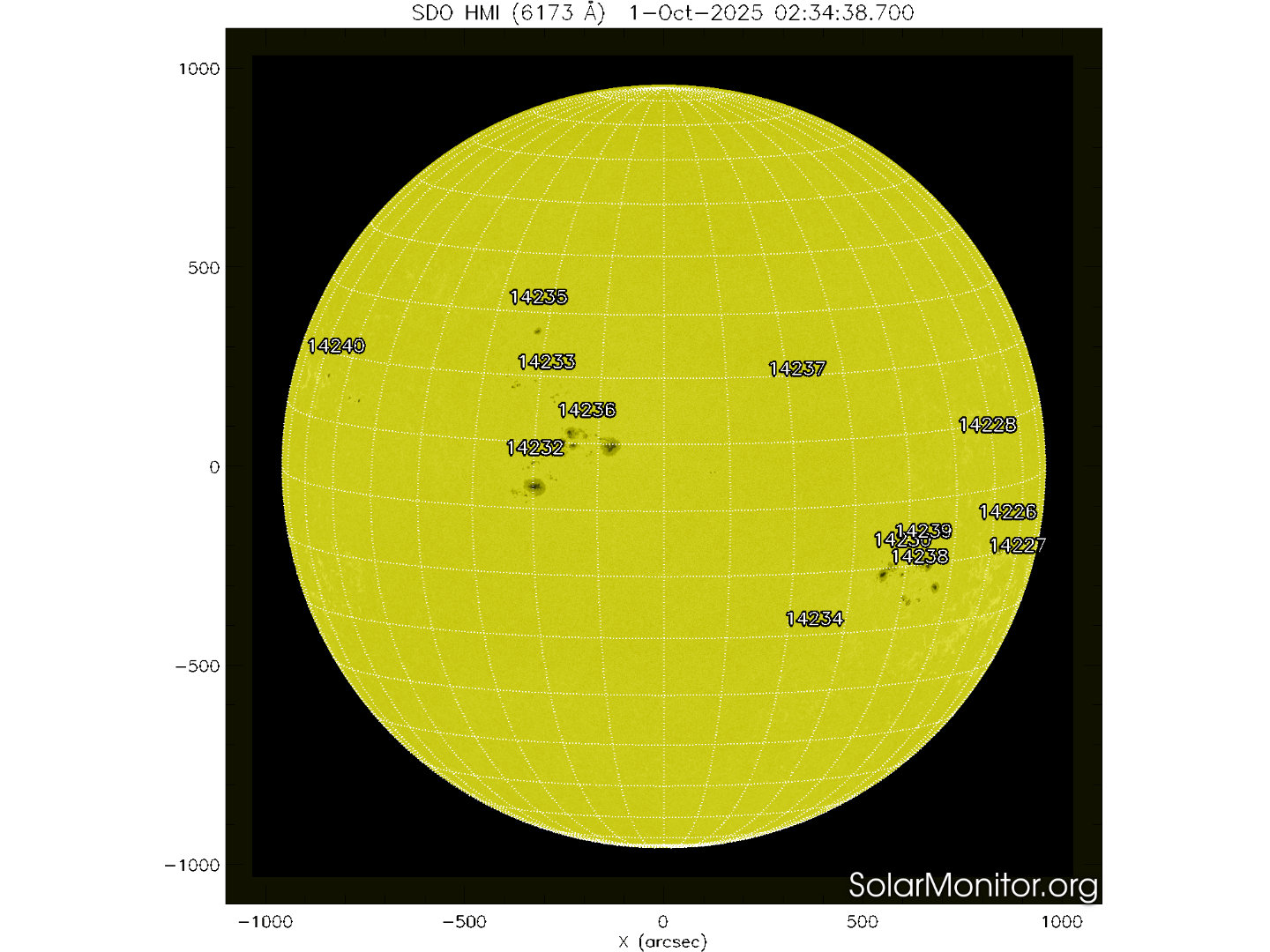 Tredici regioni attive sono presenti in fotosfera oggi 01 ottobre 2025, di cui 1o con macchie solari e 3 prive di macchie.