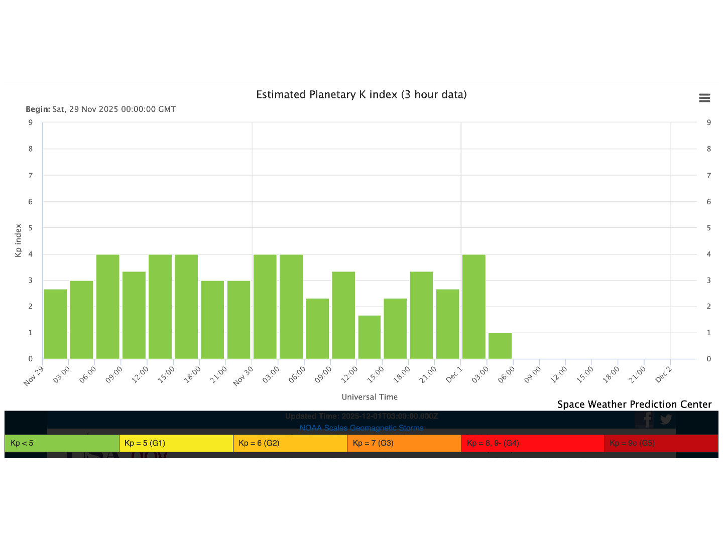 Oggi fino alle 09:00 CET il campo geomagnetico non è perturbato.