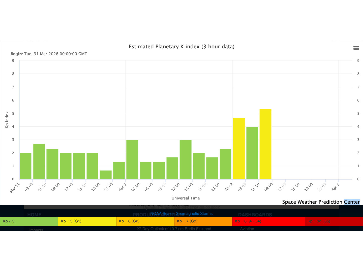 Fino alle 12:00 CEST di oggi, il campo geomagnetico è stato perturbato a livelli minori (tempesta geomagnetica di classe G1) da dopo la mezzanotte.