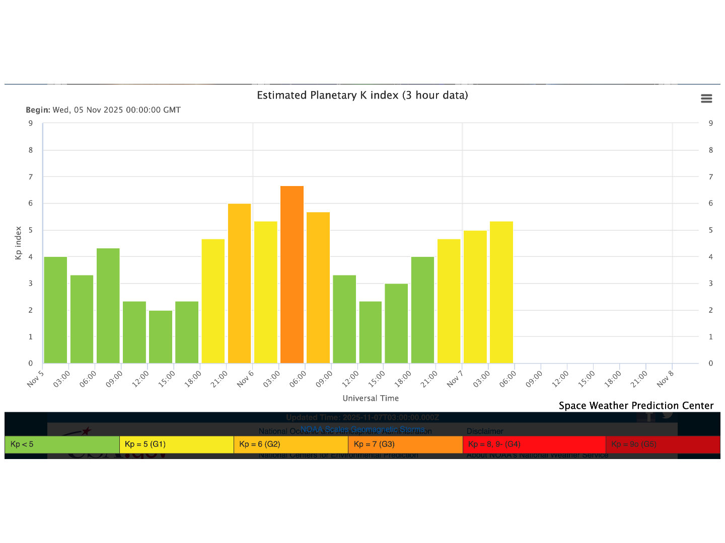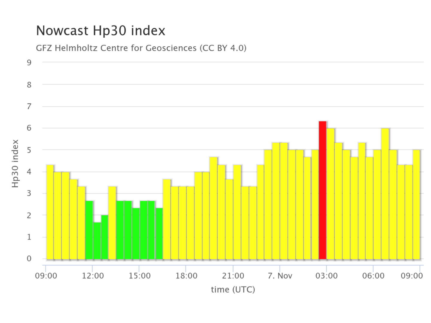 Oggi fino alle 09:00 CET il campo geomagnetico è perturbato a livelli minori (tempesta geomagnetica di classe G1) da molte ore.