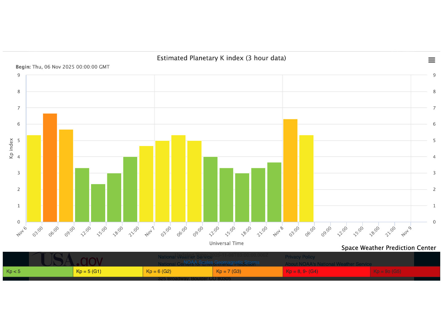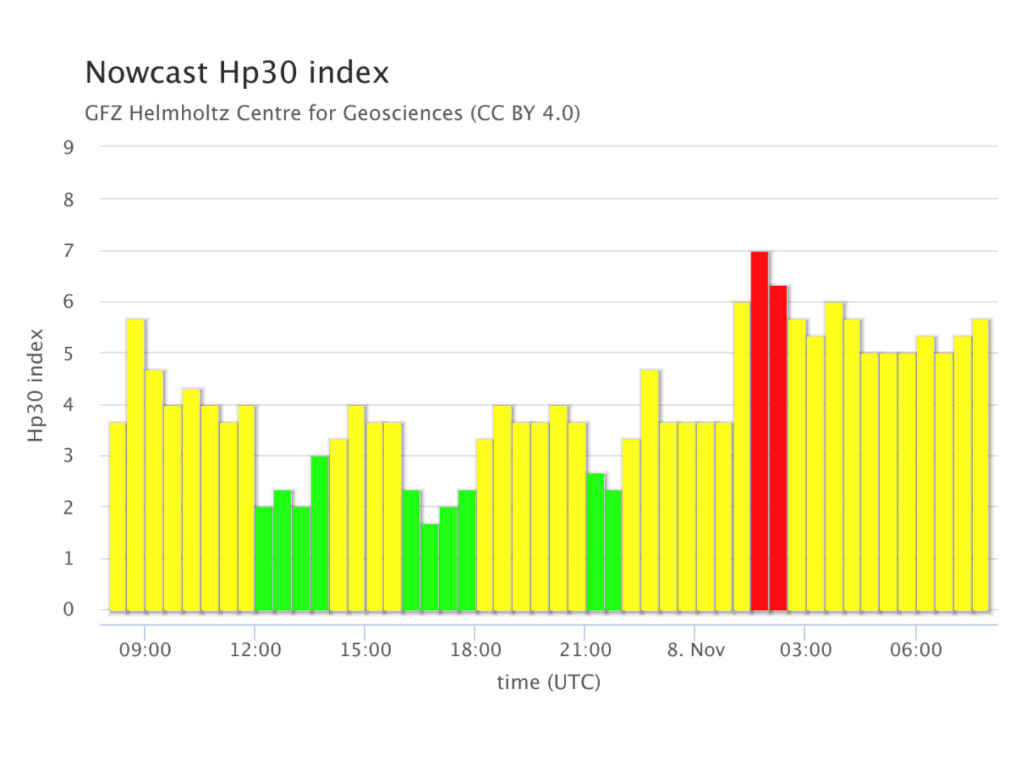 Oggi fino alle 09:30 CET il campo geomagnetico è perturbato da livelli minori (tempesta geomagnetica di classe G1) a livelli moderati (tempesta geomagnetica di classe G2) da molte ore.