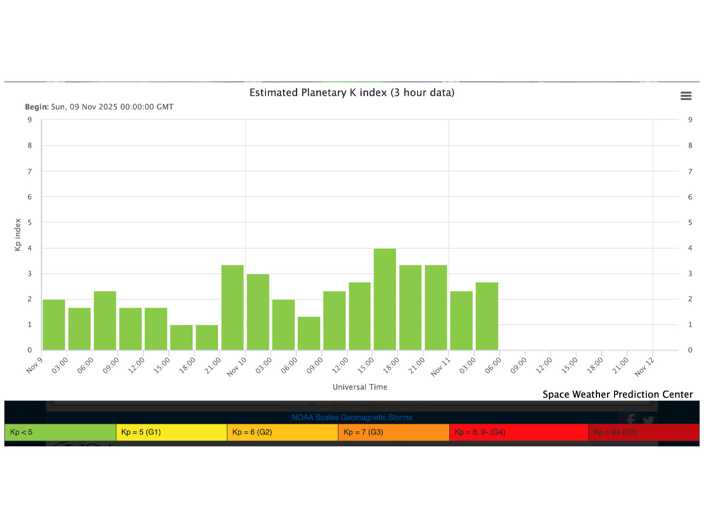 grafico dell’indice k planetario