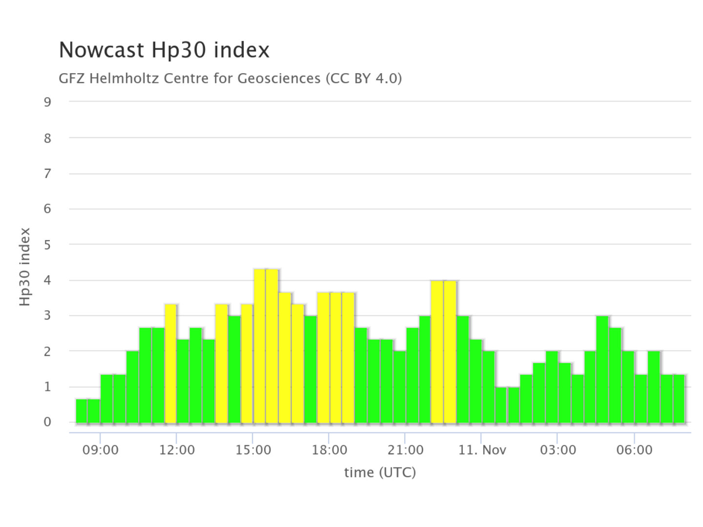 grafico dell’indice geomagnetico Hp30