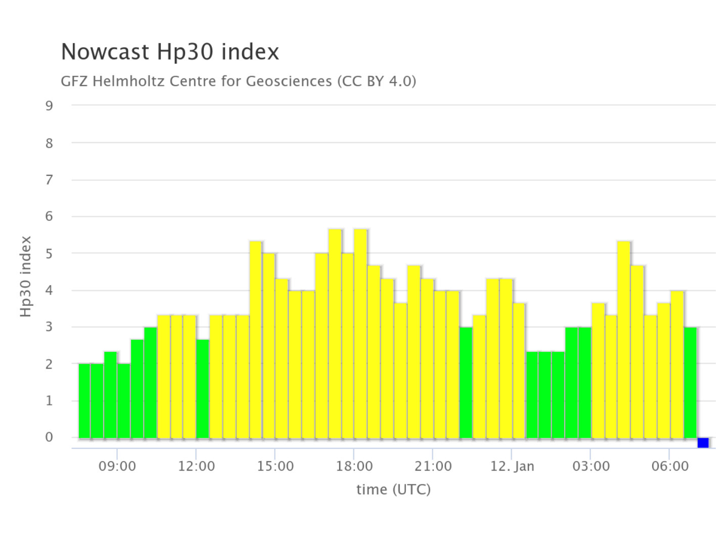 Ieri pomeriggio il Campo geomagnetico è stato perturbato a livelli minori (tempesta geomagnetica di classe G1) per diverse ore.