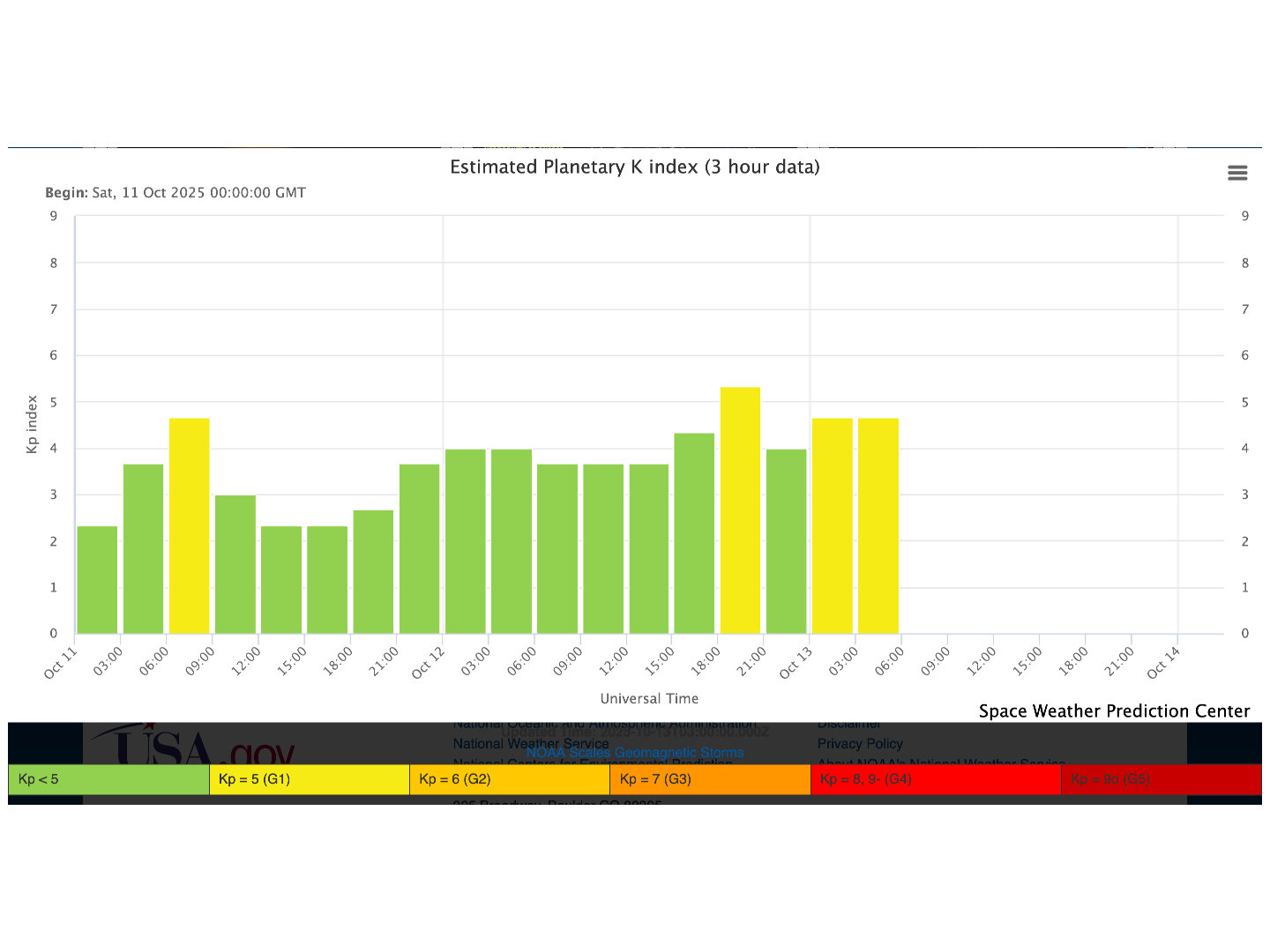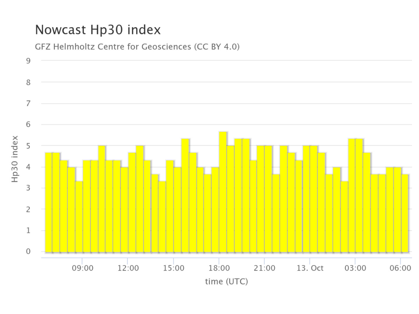 Oggi alle 08:30 CEST il campo geomagnetico è perturbato a livelli minori (tempesta geomagnetica di classe G1) da diverse ore.
