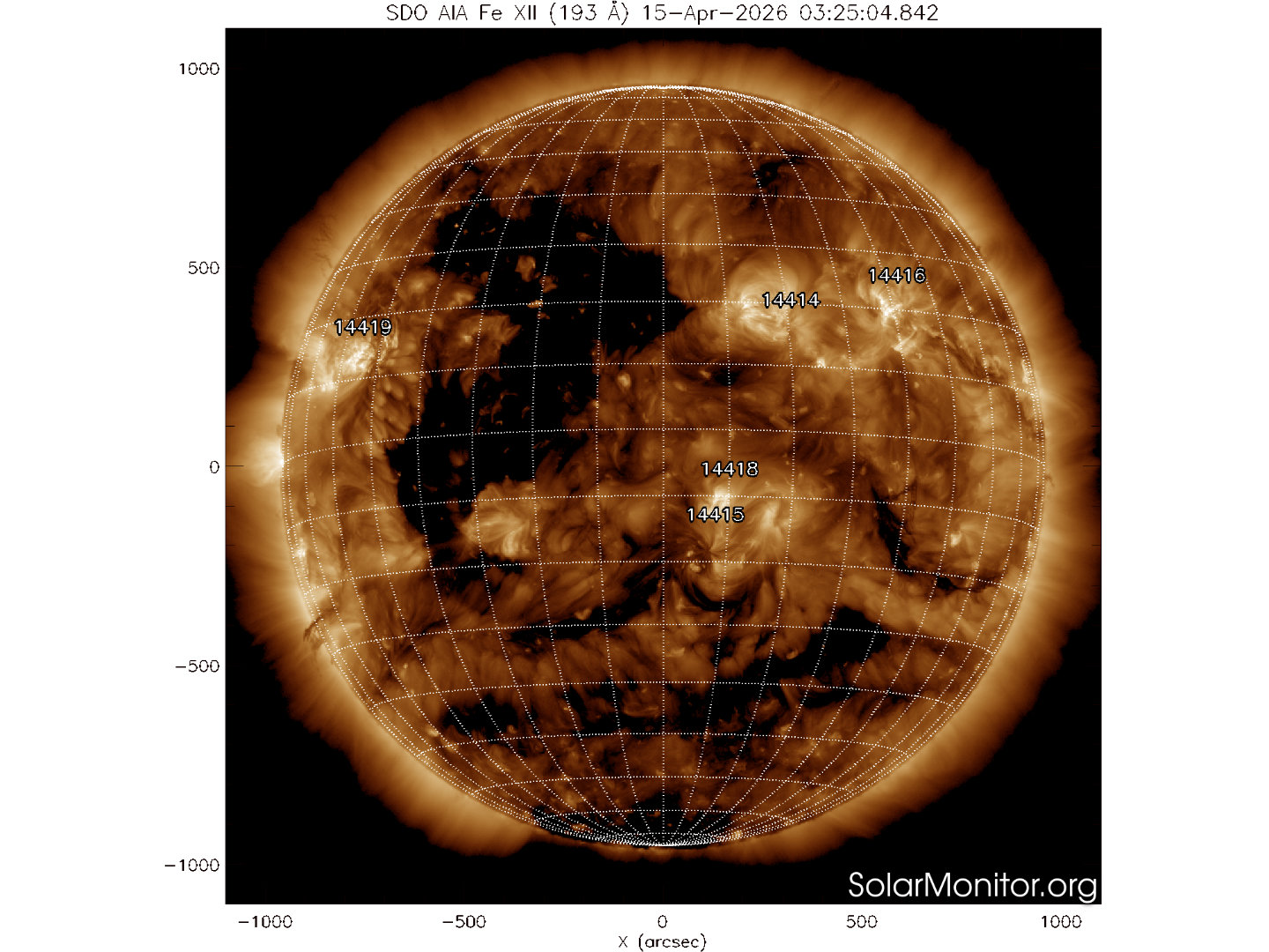 Un buco coronale si trova nell’Emisfero nord ad est del Meridiano centrale e su di esso.