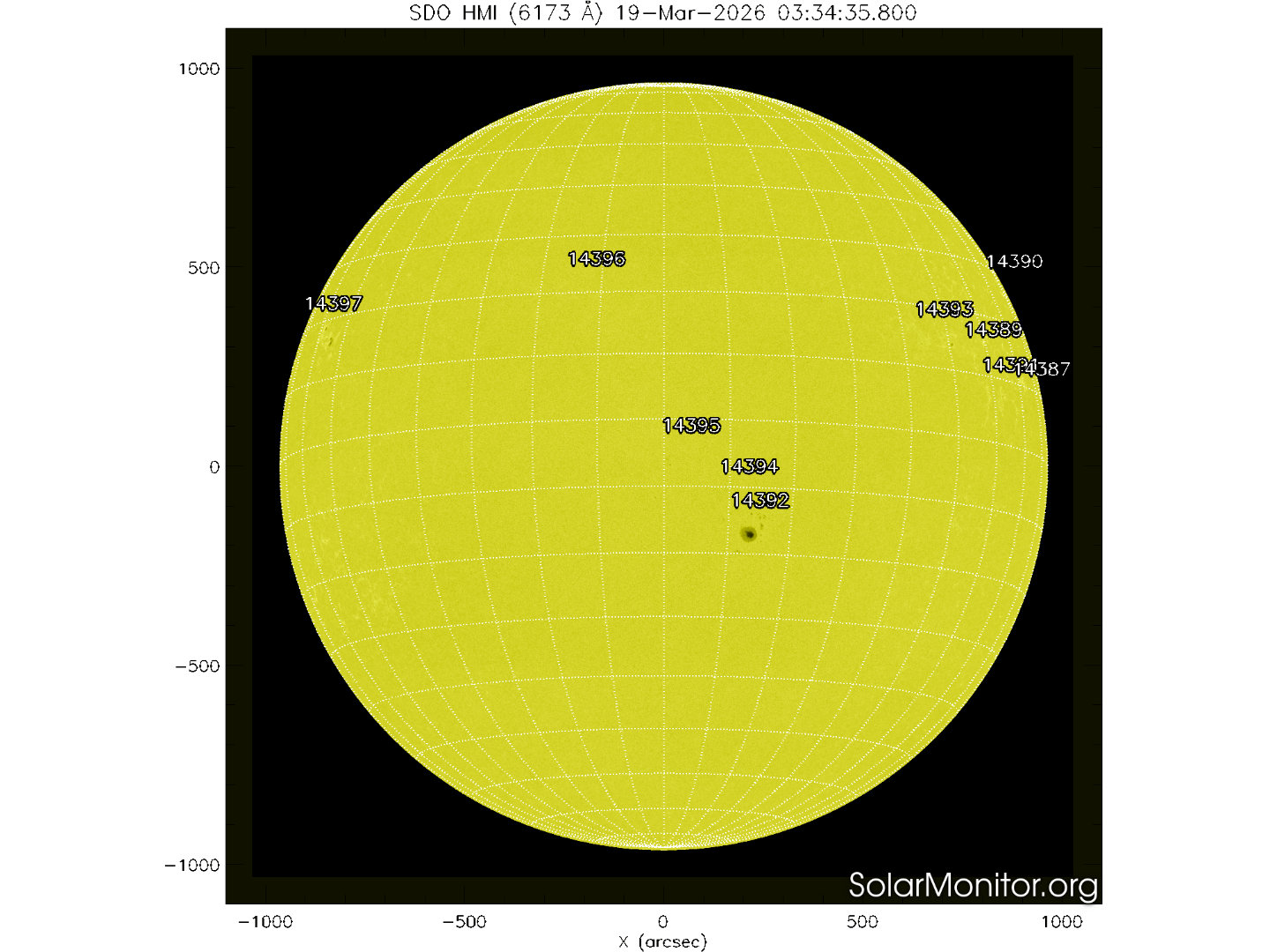 Dieci regioni attive sono presenti in fotosfera oggi 19 marzo 2026, di cui 5 con macchie solari e 5 prive di macchie.