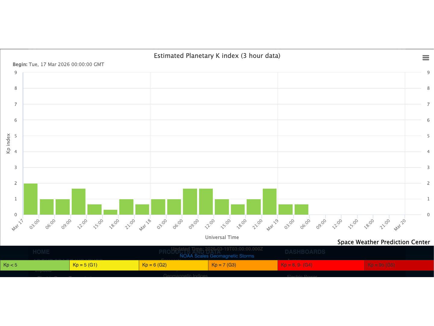 grafico dell’indice k planetario