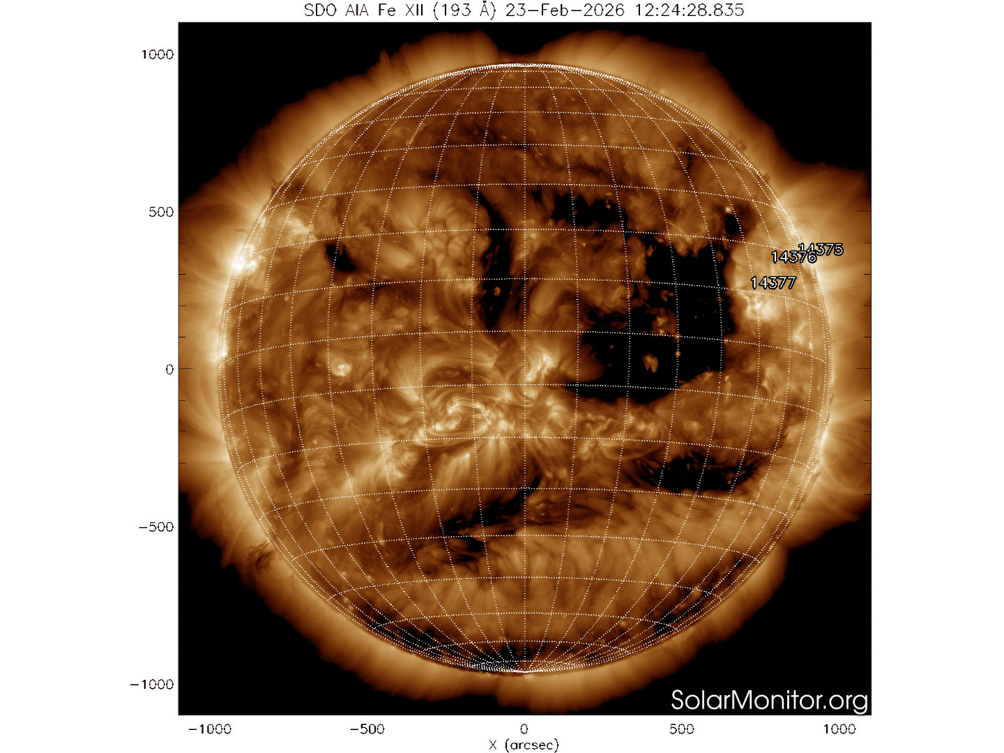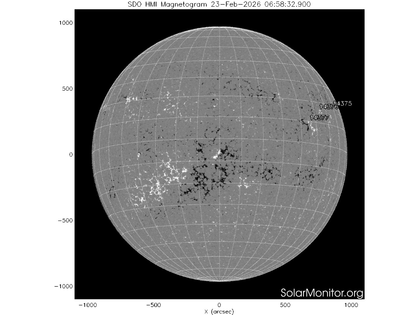 Tre regioni attive sono presenti in fotosfera oggi 23 febbraio 2026, tutte prive di Macchie solari.