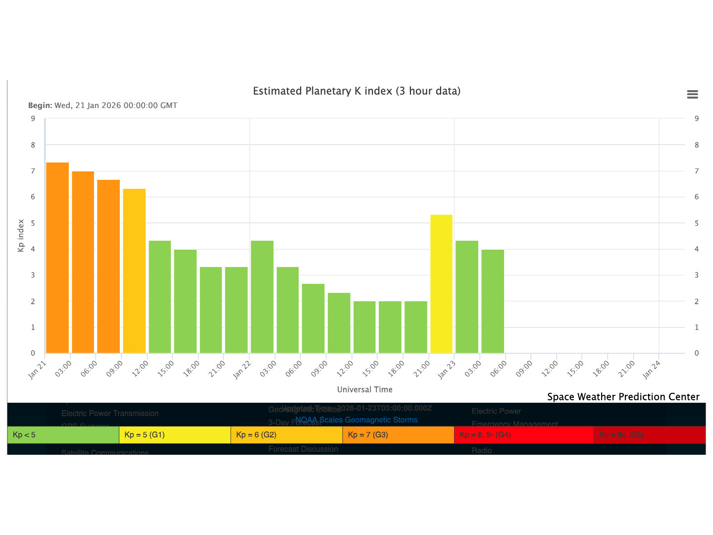 Ieri per alcune ore prima di mezzanotte il campo geomagnetico è stato perturbato a livelli minori (tempesta geomagnetica di classe G1).