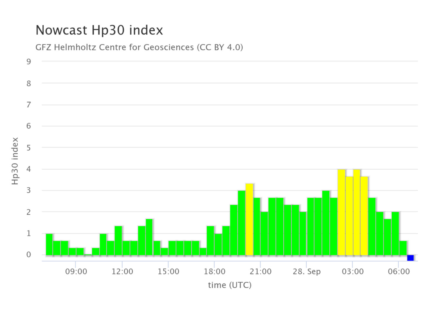 grafico dell’indice geomagnetico Hp30