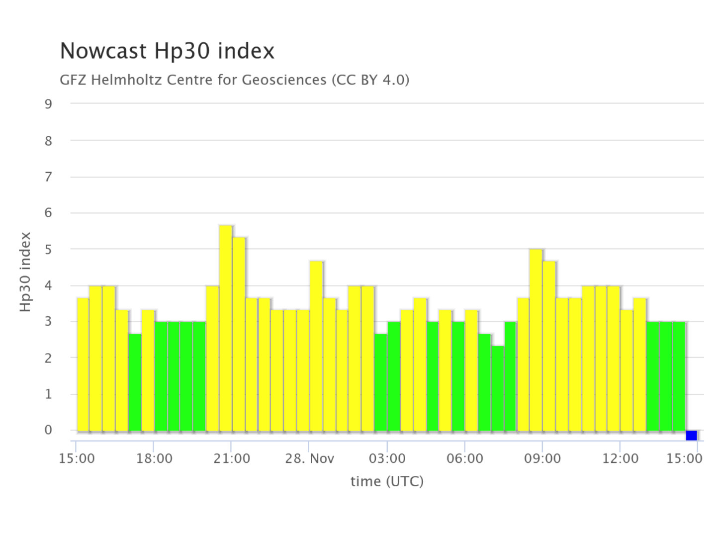 Oggi fino alle 16:30 CET il campo geomagnetico non è perturbato.