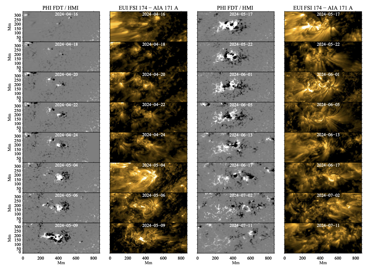 L’analisi combinata dei dati delle due sonde ha permesso di seguire per la prima volta tre rotazioni solari consecutive, mostrando come la complessità del campo magnetico della regione NOAA 13664 sia cresciuta nel tempo fino a generare potenti brillamenti ed espulsioni di plasma, dando origine alla famosa tempesta geomagnetica del 10 maggio 2024, e culminata nel brillamento più intenso degli ultimi vent’anni, avvenuto il 20 maggio 2024 sul lato nascosto del Sole.